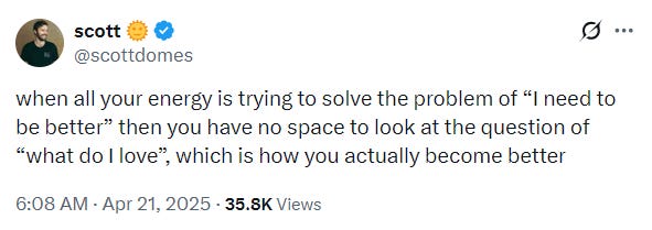 There was a considerable amount of tension within me when writing these theses. The analytical part of me that thinks I should remain completely dispassionate and objective. It wants to acknowledge that this is one possible mechanism among many, and that I am generalising from personal experience. It wants me to discuss counterexamples, include empirical research, and do a proper literature review. It wants to acknowledge that I have not rigorously defined my terms. I have not justified key assumptions. I have not discussed the direction of causation. I have not discussed what this theory uniquely predicts. I have not discussed whether this theory is even falsifiable. And I should make clear that human psychology is complex and multifactorial and that any single-mechanism explanation is necessarily incomplete. The analytical part of me wants to keep raising objections like this until blood runs out of my eyes and I am cold and dead on the floor.